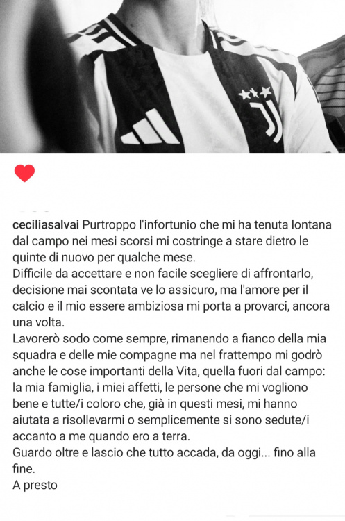 Cecilia Salvai ha riportato in allenamento una lesione del tendine del retto femorale della coscia destra. La calciatrice sarà sottoposta nei prossimi giorni ad intervento chirurgico di riparazione del tendine lesionato.