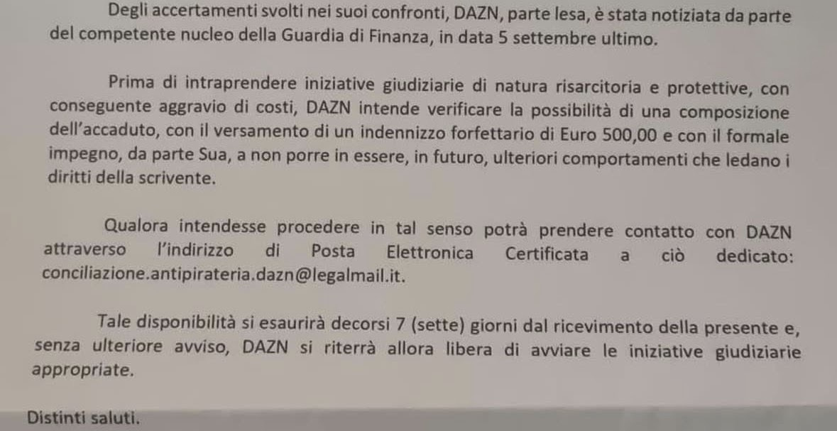 Non ci stanno con quei prezzi perchè pochi si abbonano, ma come fanno a credere che ci sia gente pronta a spendere 35 euro al mese per dazn? Dai numeri che hanno dato è meno del 4% degli abitanti che si è abbonato a dazn, numeri ridicoli per una nazione che fa del calcio una specie di fede religiosa. Da quei prezzi nasce la pirateria, inutile stare a parlare di legalità e di giustizia quando le premesse non ci sono. Se vuoi sconfiggere la pirateria, allora devi fare una politica diversa sia nei prezzi che nella gestione delle risorse. Che vuol dire? Prezzi meno alti e diritti collettivi aboliti o con una distribuzione che vada a premiare la squadra più importante.