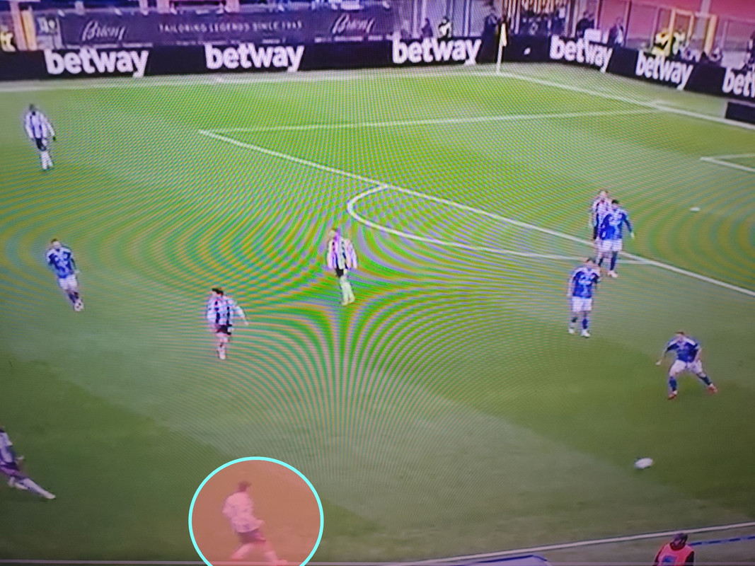 Qui vediamo come sostanzialmente si siano create le coppie in area di rigore e, a conferma che anche creando le coppie, piuttosto che a zona, siano in realtà fondamentali l’attenzione, l’abitudine, ecc.. più della scelta del tipo di castello che si vuole costruire, si nota come Kalulu, nonostante non abbia un uomo e siano già “tutti presi”, guardi la palla, stringa troppo e non cerchi né con lo sguardo, né tanto meno col movimento, l’uomo che lo attacca alle spalle. Questo stringere troppo dei nostri difensori in zona traffico lo avevamo già visto al mondiale per club nel gol di Doku (e lì non fu su azione da fermo..) e lo avevamo visto anche nello schiacciamento dei mediani nei tanti tiri da fuori lasciati contro Dortmund e inperd. Di fatto son tutte situazioni diverse (calcio piazzato, azione manovrata, tiri da fuori) ma concettualmente l’errore di “schiacciamento” è sempre il medesimo.