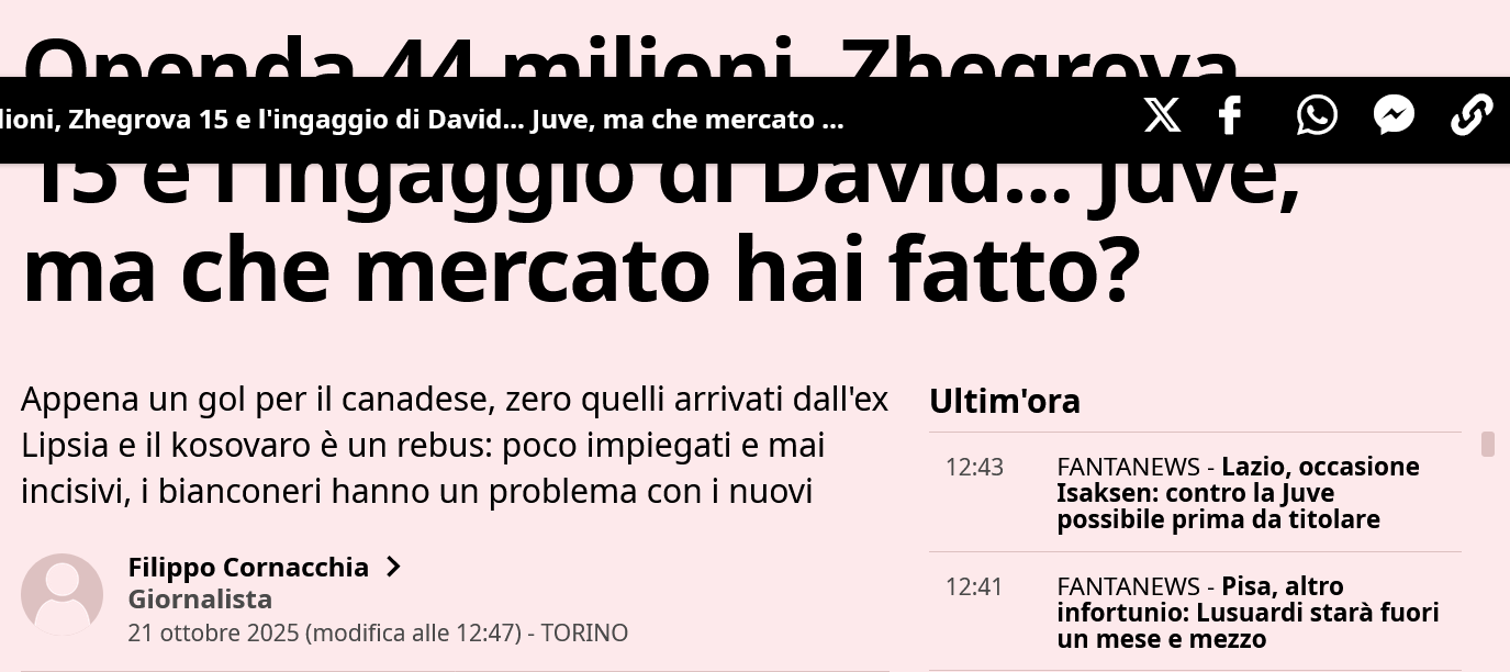 Bhé a parte che sono ruoli diversi (David purtroppo conteranno sempre e solo i gol segnati), non mi sembra che ci sia sta mega pressione mediatica su David (mentre ne ha avuta sempre tantissima Vlahovic)...