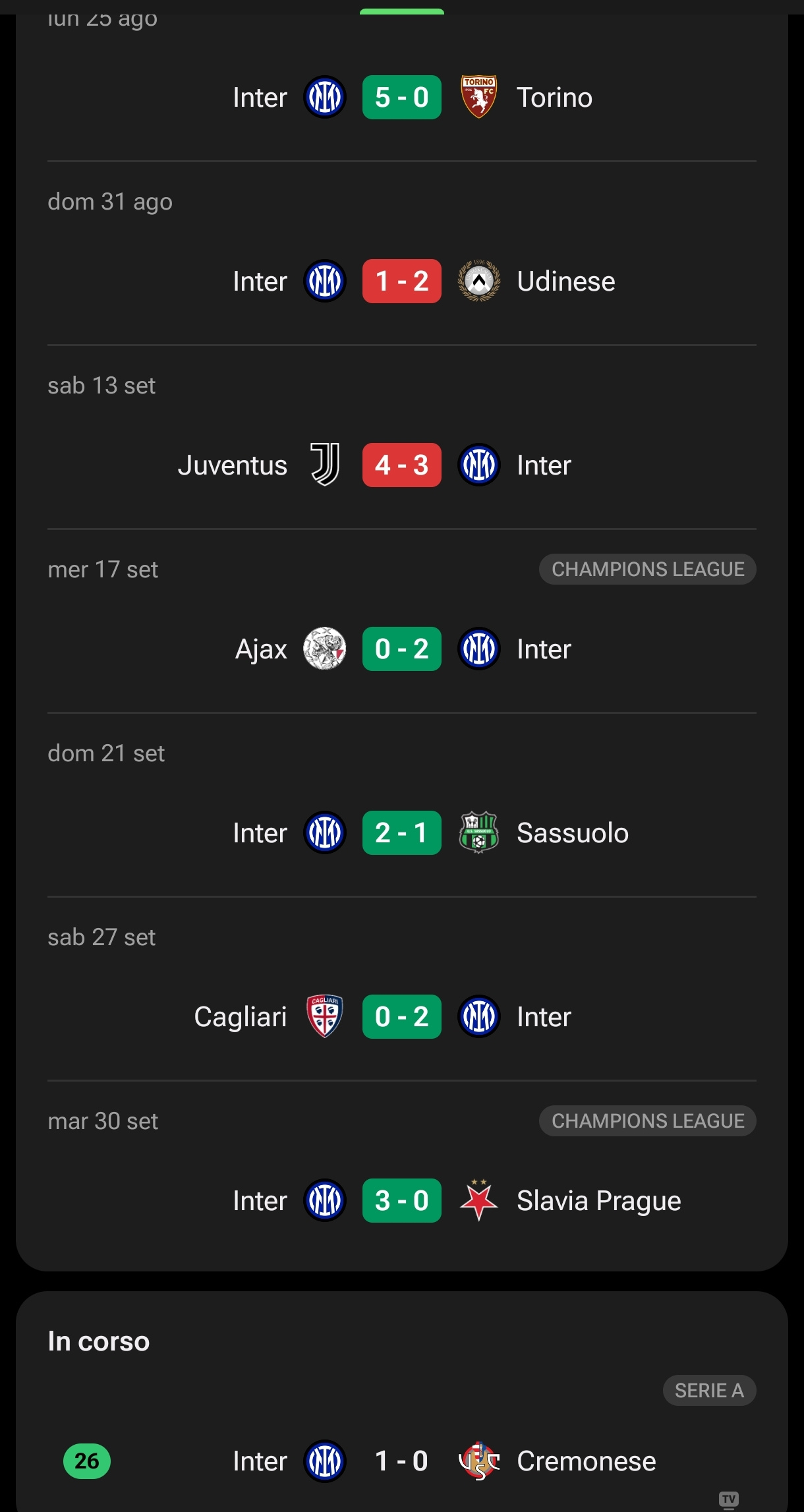 Riferite ai rattazzi del 5 a 0 che la farsa del calendario e club che si scansano sta finendo e dalla prossima comincia il vero campionato che li porterà all esonero di chivu prima di Natale