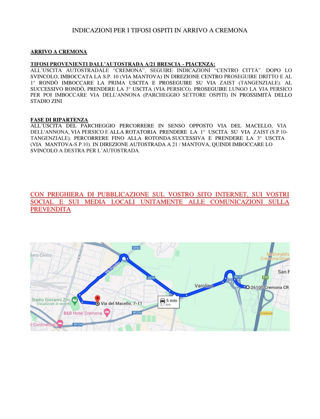 Si raccomanda di presentarsi in anticipo sull’orario dell’evento per evitare code e assembramenti ai tornelli; nelle fasi di ingresso, di permanenza e di uscita dall’impianto seguire sempre le istruzioni del personale di servizio in modo tale da garantire la propria sicurezza e quella degli altri.