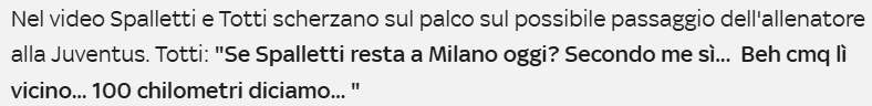 Totti che fa la battuta che Spalletti rimane a Milano ma a 100km di distanza con Spalletti che non sa cosa dire.