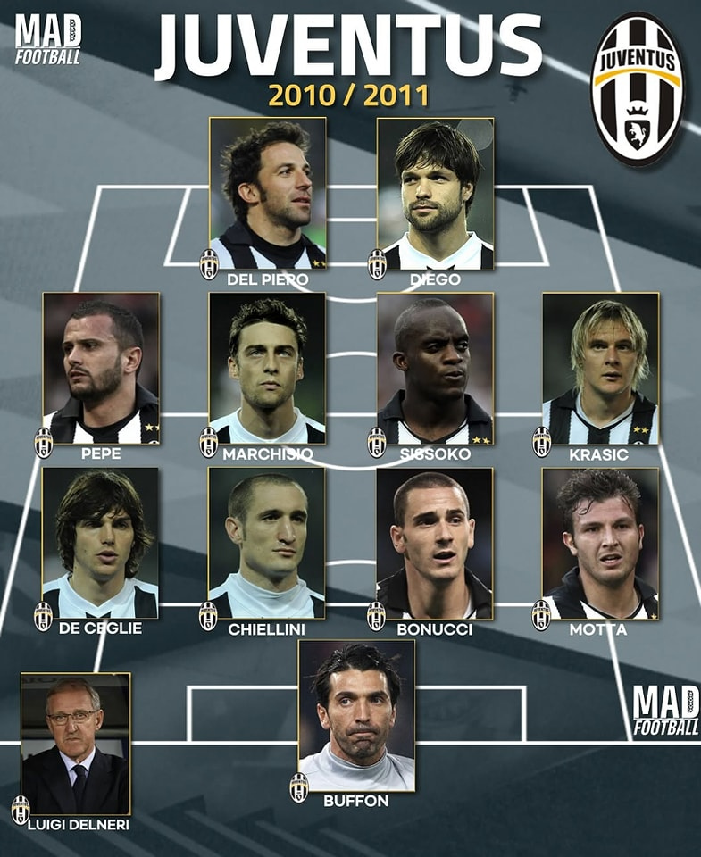 In realtà la formazione non era quella, Diego fu venduto e davanti giocavano un pò Amauri, un pò Iaquinta, un pò Matri (da Gennaio), un pò Toni (da Gennaio) e Del Piero in pianta stabile dall'infortunio di Quagliarella.