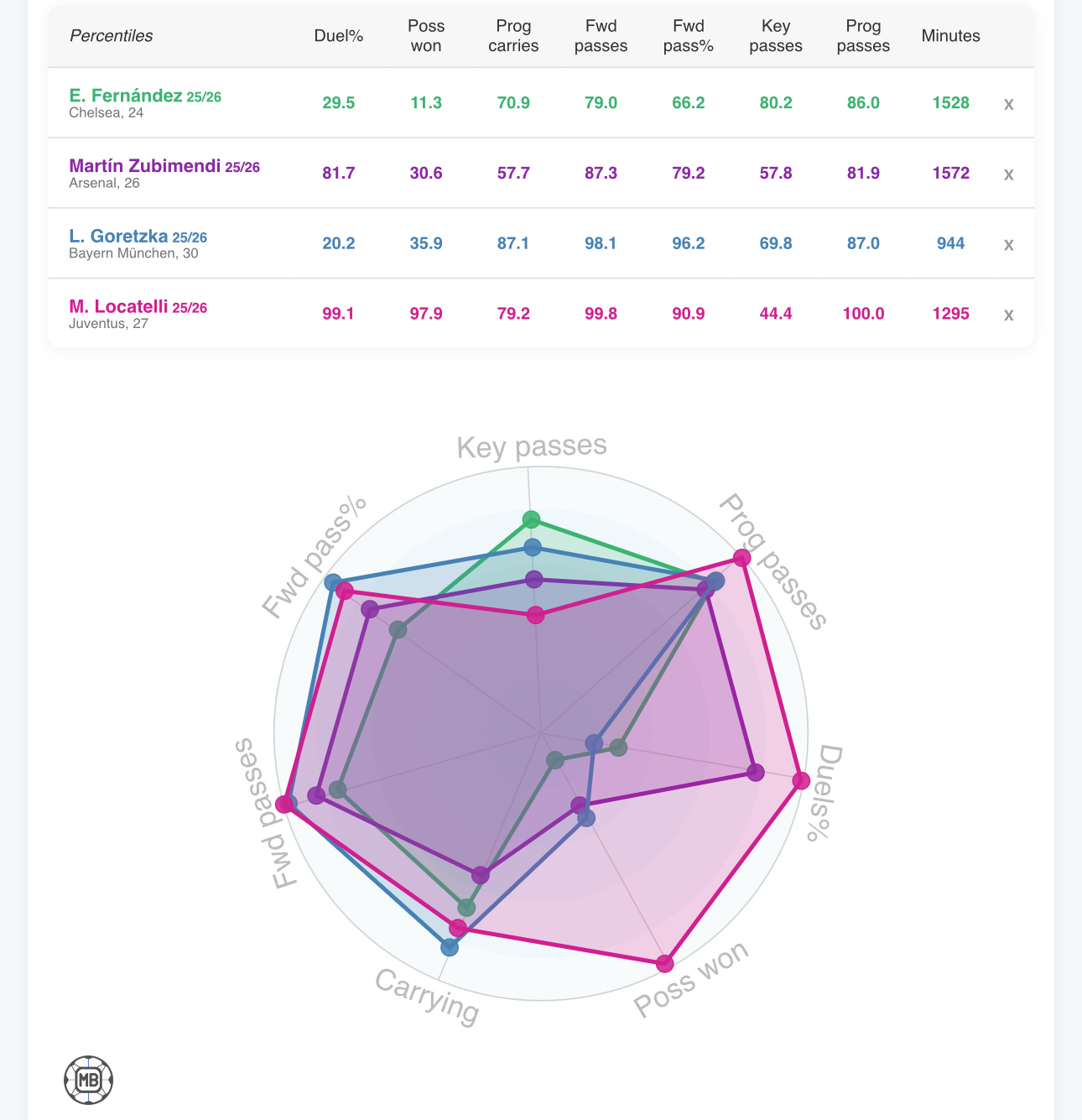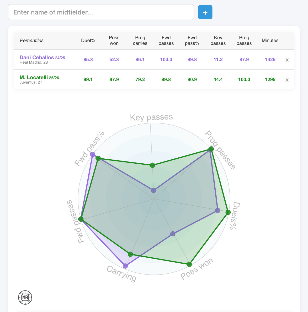 Si ma da mezzala da affiancare a Locatelli non per sostituirlo...comunque mi fido dei tuoi algoritmi...cerca una mezzala con percentuale alta di passaggi chiave..anche se nelle palle portate avanti Ceballos ha percentuali molto alte