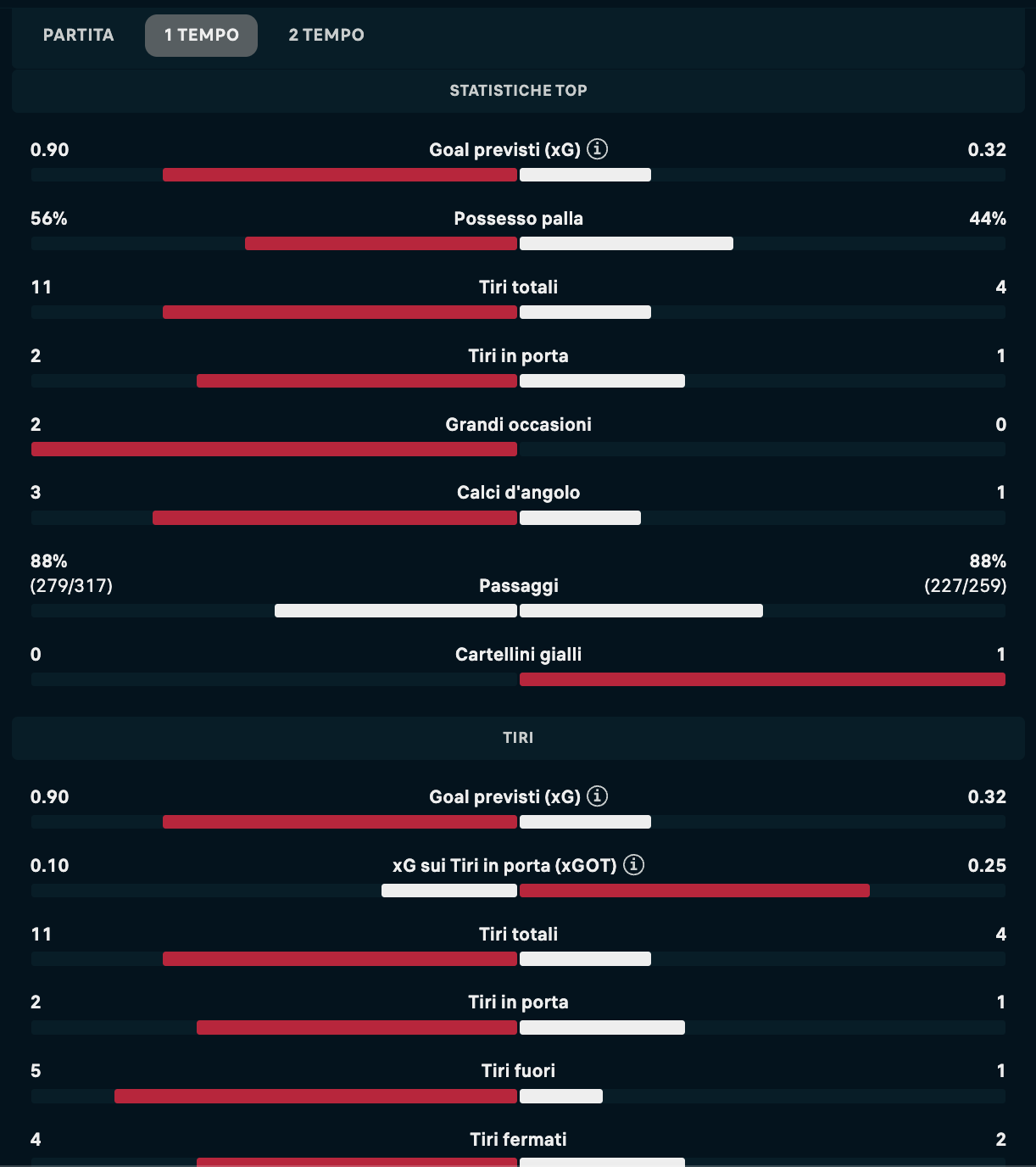 Però ieri fine primo tempo il possesso palla era simile...e avevamo fatto gli stessi tiri in porta loro...