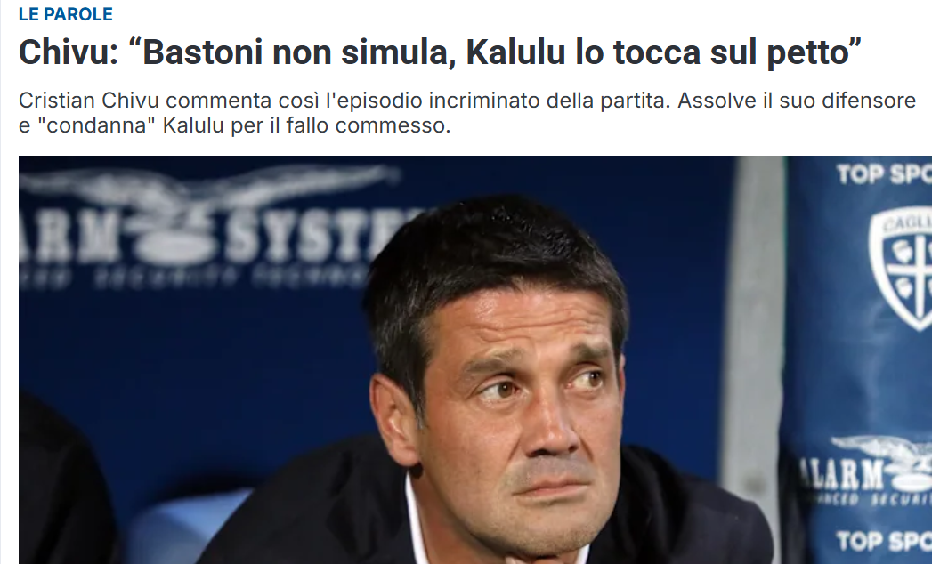 Ripeto avrebbero potuto fare un figurone e decidere il VAR una volta accortosi che tra Kalulu e Bastoni c erano almeno 10 cm di distanza. Naturalmente 5 giornate di squalifica a bastoni e ammonizione rimossa a Kalulu. Vediamo se la prossima volta ci prova di nuovo
