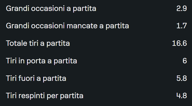 Questi sono i dati Opta-Sofascore di queste 28 giornate di campionato, con le medie di quanto produciamo a partita offensivamente.