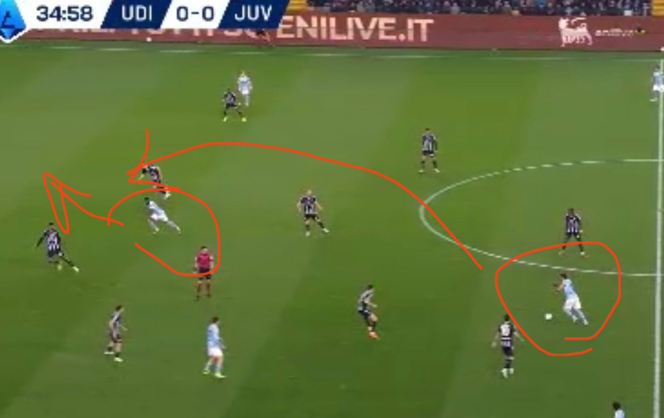 Quello di Kelly è quello che sviluppa il gol. Un minuto prima Locatelli mette Boga in porta con un lancio.